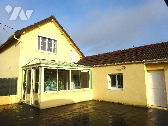 Confortable Maison comprenant au Rez de chaussée Hall d'Entrée/Véranda, Couloir, Salle à Manger, Salon, Cuisine équipée (Plaque de Cuisson, Hotte aspirante, Lave Vaisselle, Four, Micro-ondes),...